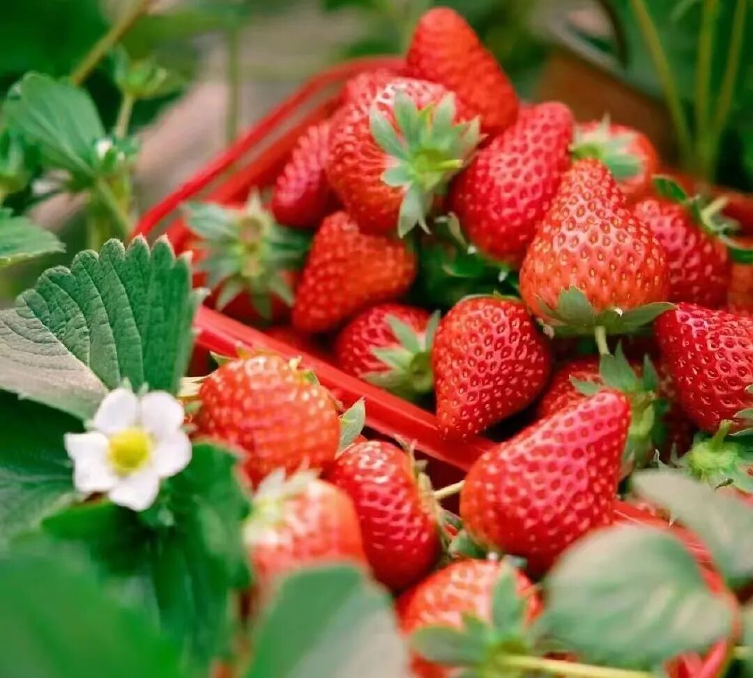 顆顆草莓宛如紅寶石點(diǎn)綴藤蔓,